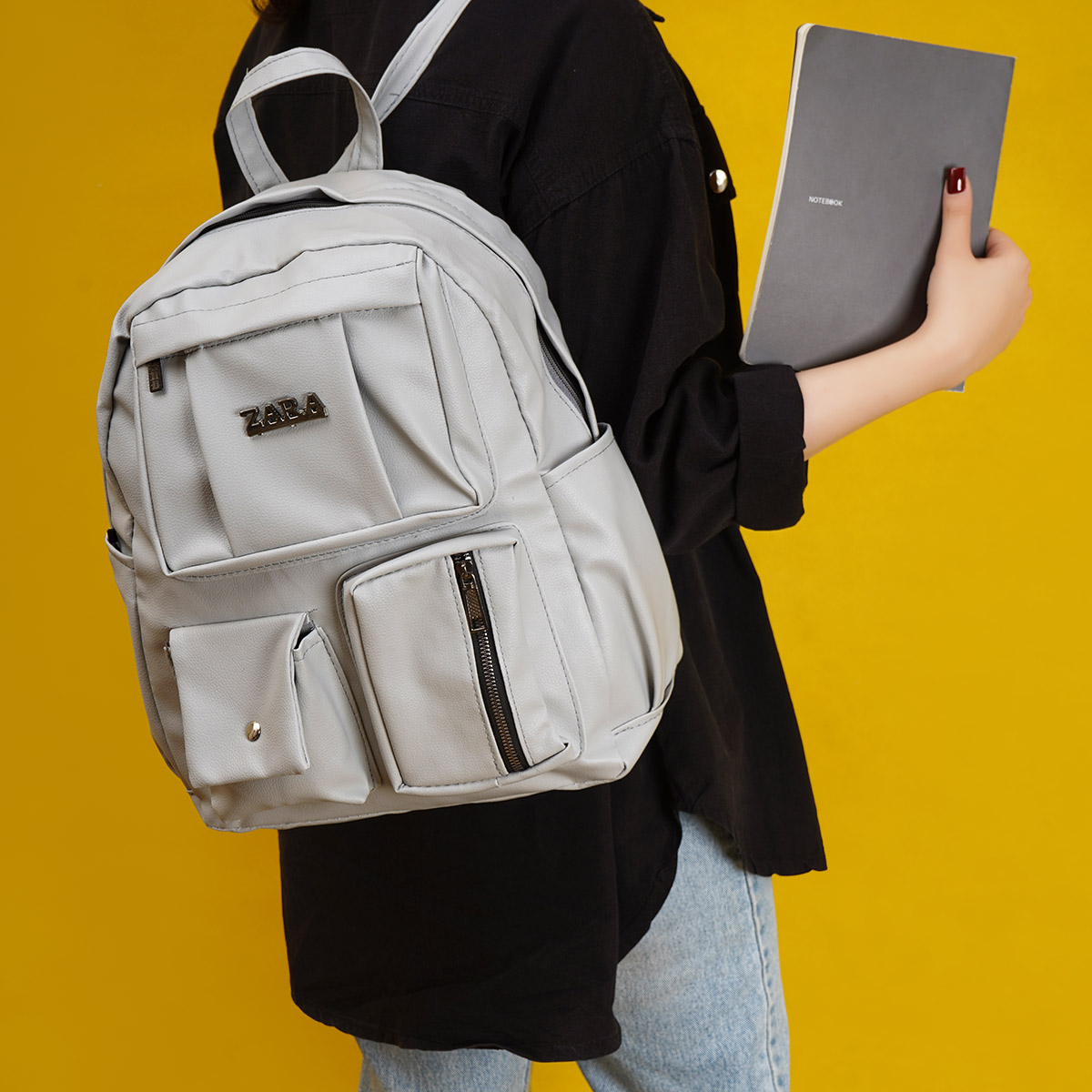 کوله پشتی چرم زنانه طوسی مدل ZARA
